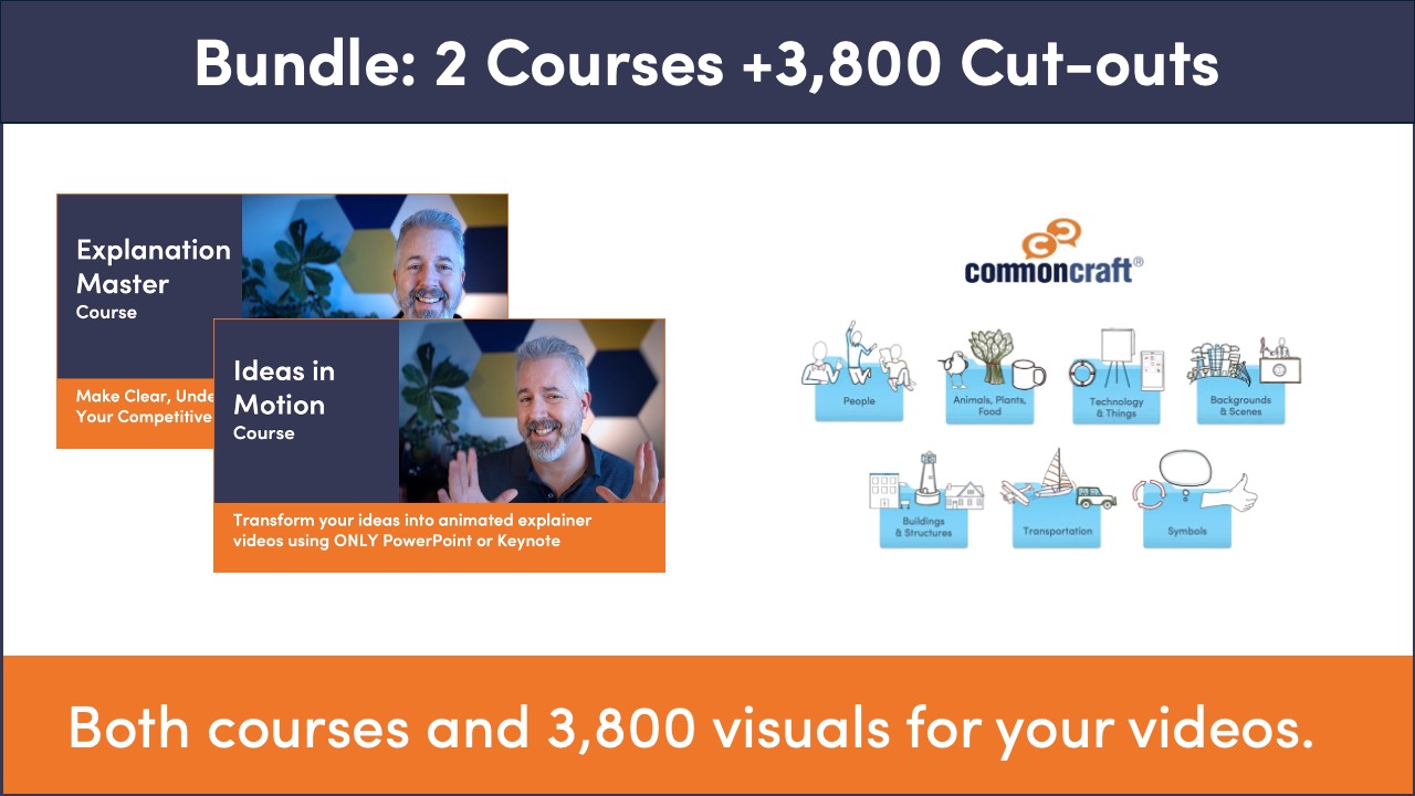 Common Craft Cut-outs are high-quality PNG files with transparent backgrounds. The files are organized into folders for each category and match in look and feel. Use them in creative projects like videos, presentations, and courses.